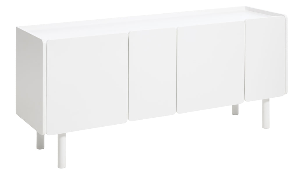 Het Glacia dressoir is een stille kracht in je interieur. Clean vormgegeven, met zachte rondingen en een serene matte afwerking. De greeploze fronten geven ‘m die moderne, rustige uitstraling — en achter die deuren vind je ruimte zat voor je mooiste servies, papierwerk of gewoon alles wat je snel wilt wegmoffelen.
