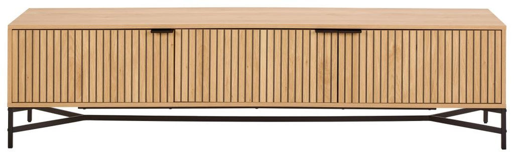 Een tv-meubel dat rust brengt in je zithoek. Het lichte eiken voelt warm aan en de minimalistische uitstraling past in elke moderne woonkamer. Praktisch én stijlvol—precies wat je nodig hebt voor een serene media-opstelling.