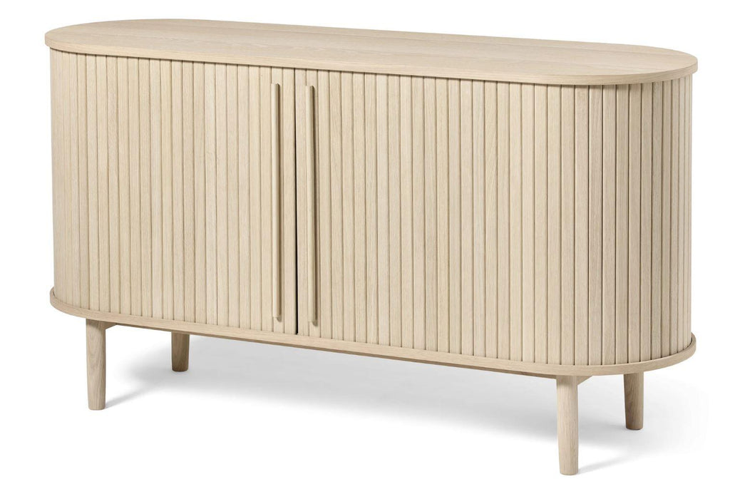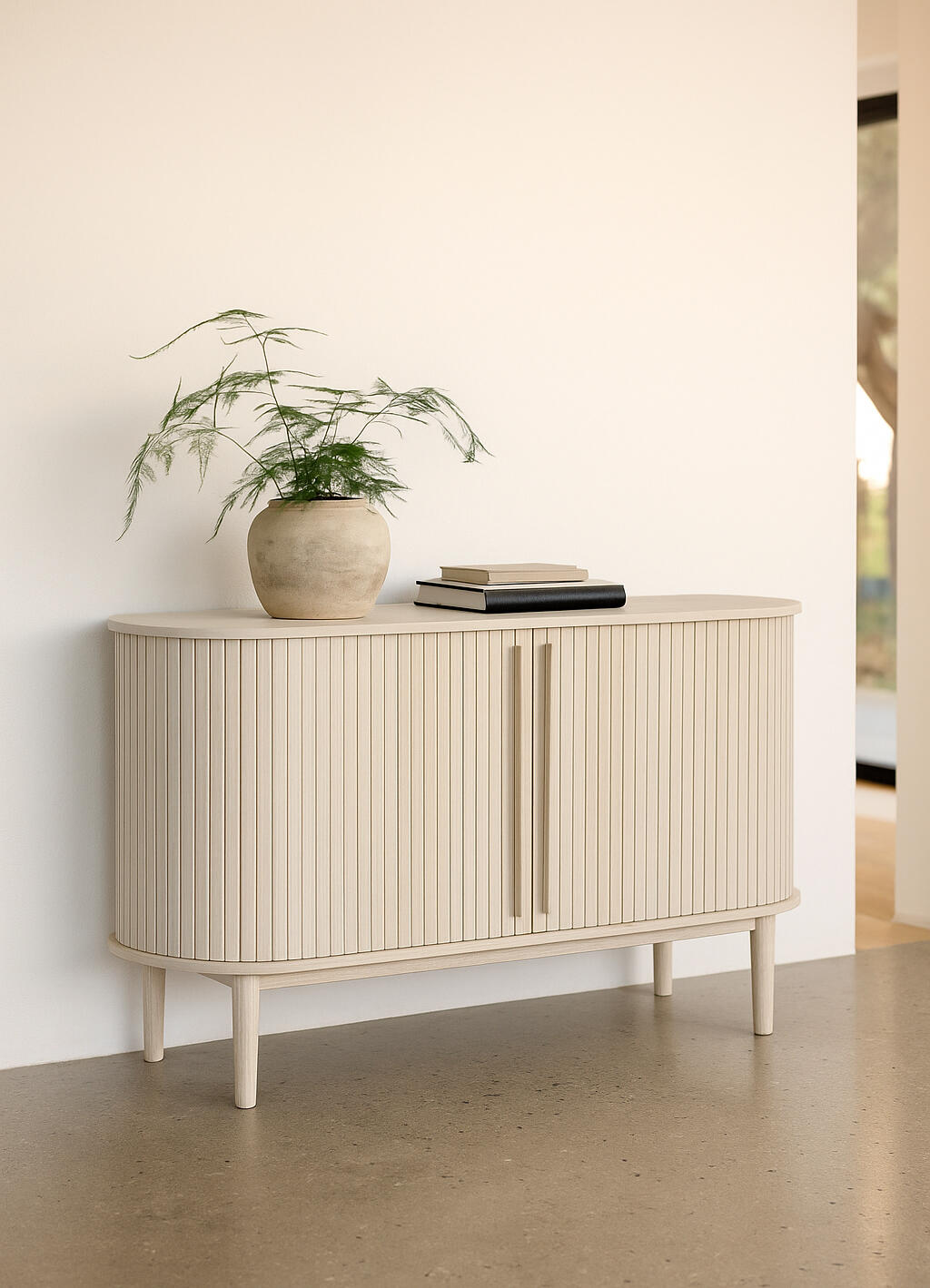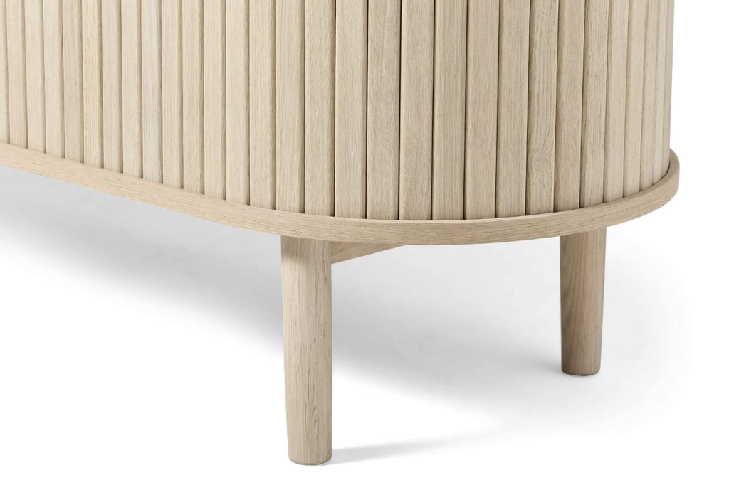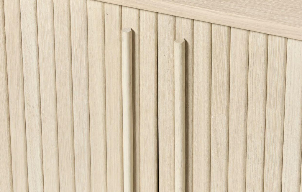 Het Skarn dressoir is een elegant opbergwonder. De zacht afgeronde body, slanke poten en verfijnde lamellen geven elke ruimte een luxe, Scandinavische touch. Ideaal voor in de woonkamer, hal of eetkamer.