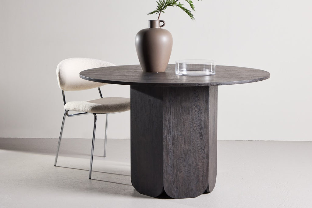 Breng stijl en karakter in je eetkamer met Yune, een elegante ronde eettafel in een diepe zwarte kleur. Met een diameter van 120 cm biedt Yune voldoende ruimte voor 4 tot 6 personen, perfect voor dagelijkse maaltijden of gezellige etentjes met familie en vrienden.